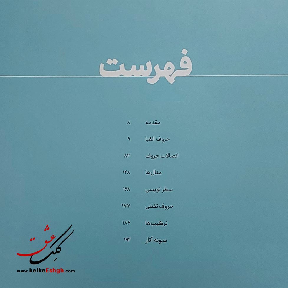 این کتاب راهنمایی جامع برای یادگیری خط کوفی نوین است و به آموزش حروف الفبا، کلمات، اتصالات، سطر و دو سطری، کلاف نویسی، حروف تفننی و ترکیبهای خلاقانه و توضیحات دقیق از همه حرکات قلم همراه با QR ویدیویی می پردازد. در ادامه می توان توضیحات ساختاری نوشتار و نمونه های نقاشیخط اجرایی به خط کوفی را مشاهده نمود. این کتاب در قطع A4 افقی و 200 صفحه، چاپ تمام صفحات 5 رنگ متالایز به چاپ رسیده است و منبعی مناسب برای هنرجویان خوشنویسی، طراحان گرافیک و علاقه مندان به تایپوگرافی معاصر است.