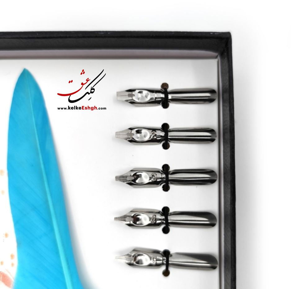 ست کادویی کالیگرافی قلم پر (دسته قلم، دوات، نوکهای فلزی و مرکب)