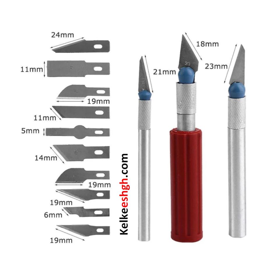 کاتر قلمی با تیغ جراحی (مجموعه 13 عددی) یک مجموعه جذاب از کاتر است. در این مجموعه، 3 عدد دسته با سایزهای مختلف قرار دارد که بر اساس نیاز خود می توانید یک سایز دسته را انتخاب کنید و 13 عدد تیغ کاتر با اشکال مختلف نیز در این بسته قرار دارد. شکل های متنوع تیغ که دارای زوایای گرد و منحنی و صاف هستند. از این ابزار می توانید برای برش های ریز و دقیق استفاده کنید. کل مجموعه در یک جعبه پلاستیکی قرار گرفته است که می توانید آن را روی میز خود یا کیف قرار دهید. از پخش شدن و آسیب دیدن تیغه ها جلوگیری میکند. کاترها با سه دسته مختلف هستند. یک نمونه آن دسته پلاستیکی دارد برای کارهای محکم که فشار دست بیشتری نیاز دارد مناسب است و دو دسته دیگر فلزی هستند و برای کارهای ریزتر و حساستر مناسب است. فروشگاه کلک عشق این محصول اقتصادی را به علاقه مندان توصیه می کند.