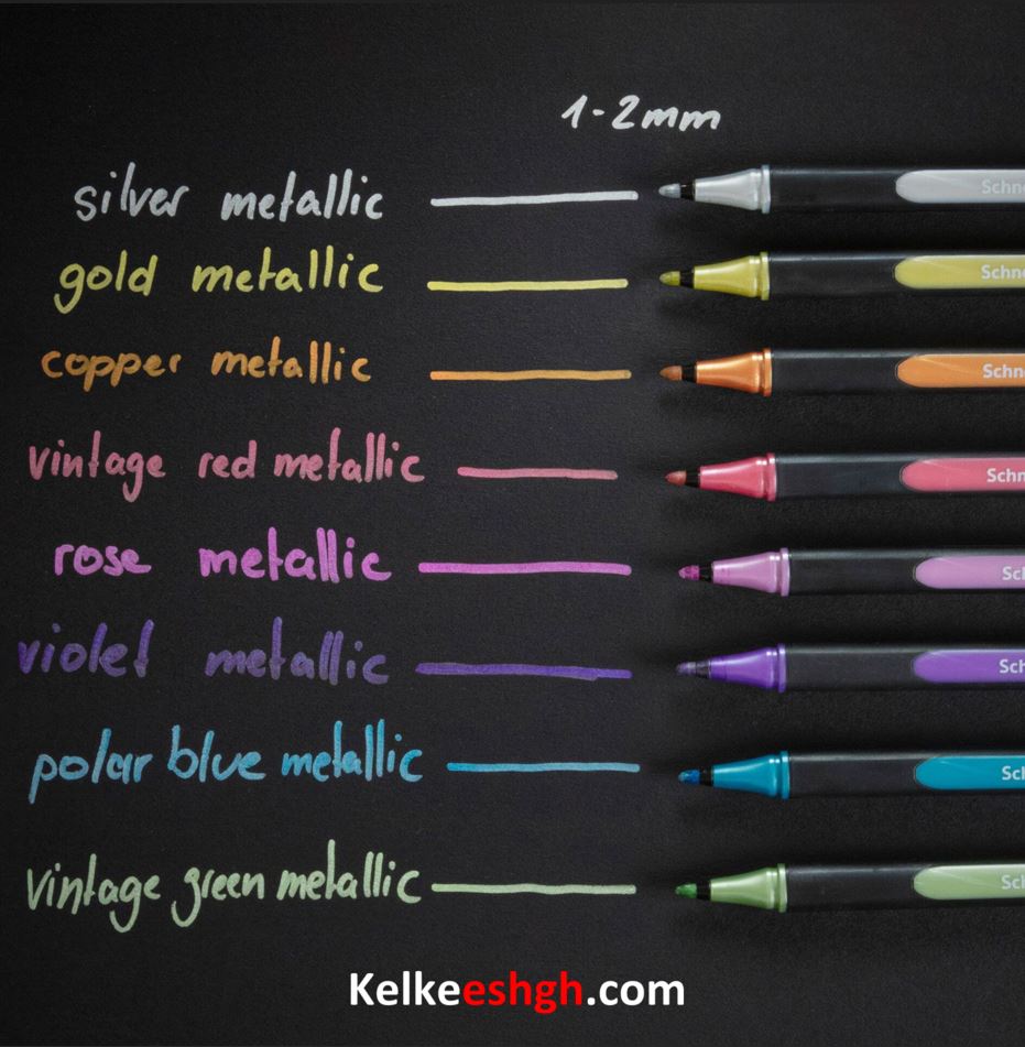 اشنایدر یکی از برندهای خوشنام در تولید نوشت افزار است. محصول ماژیک اشنایدر مدل متالیک اکرولیک 1.2 Schneider Metallic markers line  ساخت آلمان می باشد و یک ماژیک بسیار روان سبک و خوش ساخت است که با توجه به قیمت و کیفیت مناسب آن، از پرفروش‌ترین ابزارهای هنری می‌باشد. با معرفی و تولید روان نویسهای مدل paint-it طرحی جدید و خاص در اختیار شما علاقه‏مندان قرار خواهد گرفت. این ماژیک متالیک فوق العاده جذاب، روان و خوشرنگ می‏باشد. ماژیک متالیک مدل پینت- ایت در در هشت رنگ خاص نقره ای، آبی قطبی، سبز، طلایی، قرمز، مسی، رز و بنفش تولید شده است. نوک فوق العاده نرم و با دوام دارد و بدنه آن تا 88 درصد قابل بازیافت است. این روان نویس برای طراحی و نقاشی روی همه رنگ کاغذ از جمله مشکی مناسب است. فروشگاه کلک عشق نماینده فروش محصولات اشنایدر در ایران این محصول را به صورت تک رنگ هم عرضه می‏کند.
